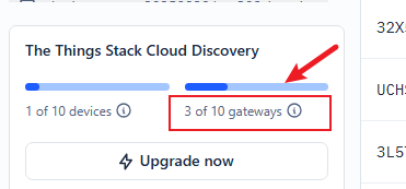 - Check whether your The Things Industries account has sufficient gateway quota. Generally, accounts verified with a free credit card can only support up to 10 gateways (see figure below).