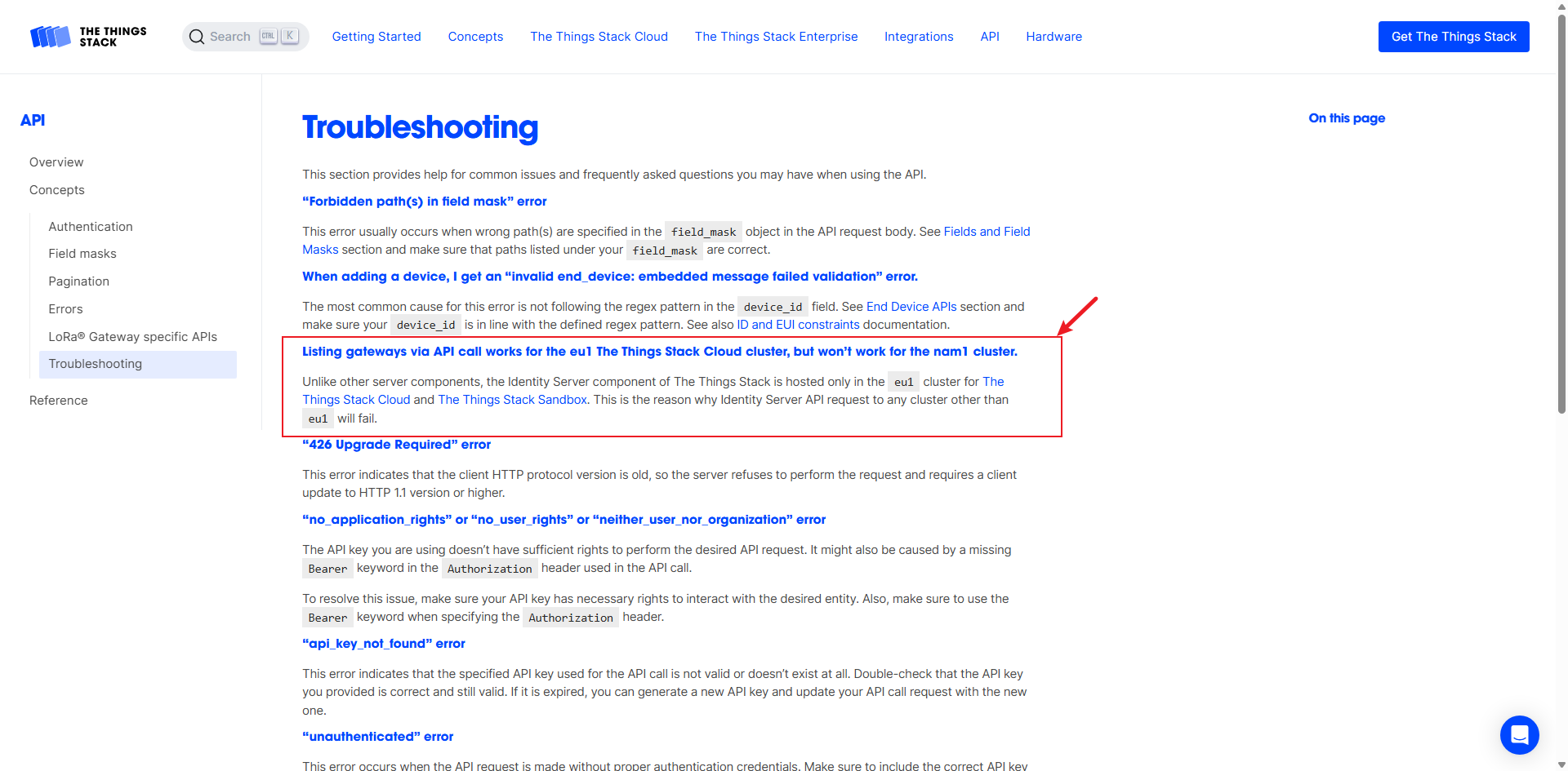 A4: This is a limitation of The Things Industries platform. Our implementation relies on calling the platform’s API under the hood. According to The Things Industries troubleshooting guide, currently only eu1 is supported; nam1 is not.