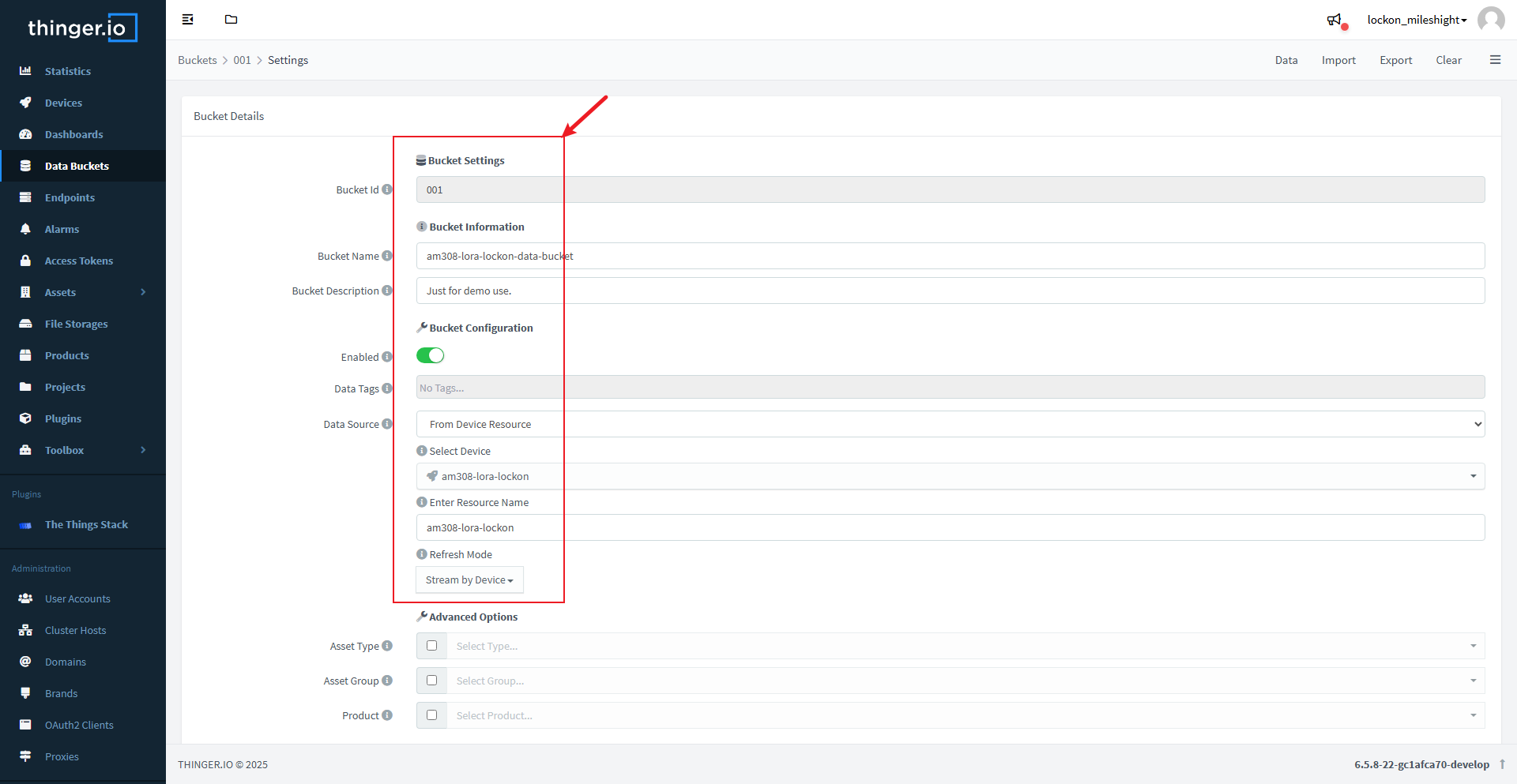 Now, find the device we just created and link this data bucket to it, the detailed steps are as follows: