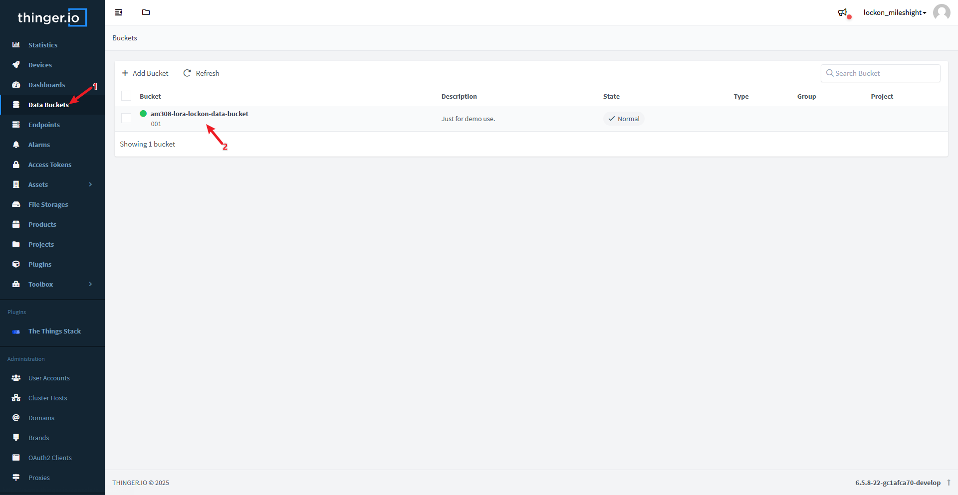 Then, navigate to the Data Buckets page to check whether the data has been saved: