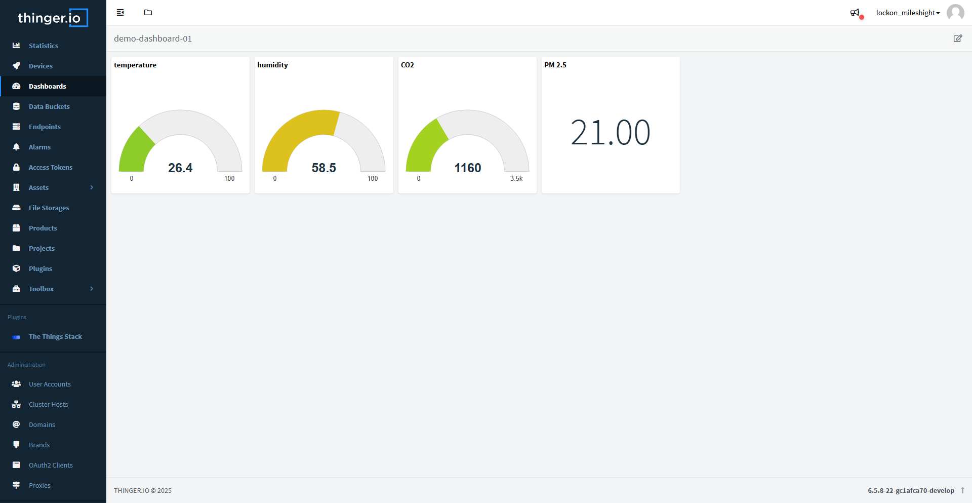 At this point, the device's data is being transmitted from the gateway to the Thinger.io platform. Next, we will check the data status.
