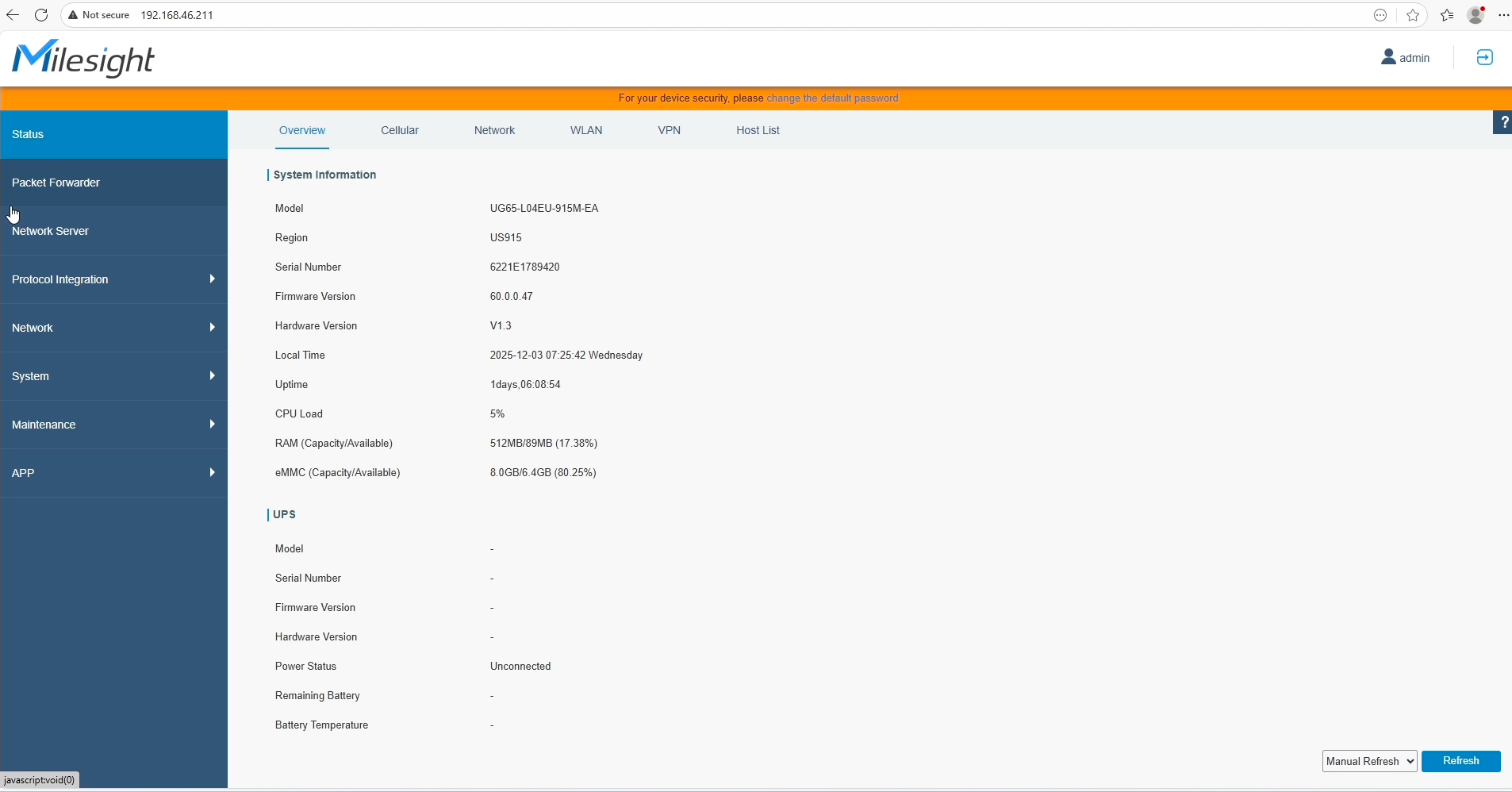 - Milesight LoRaWAN Gateway: UG65/UG56/UG67