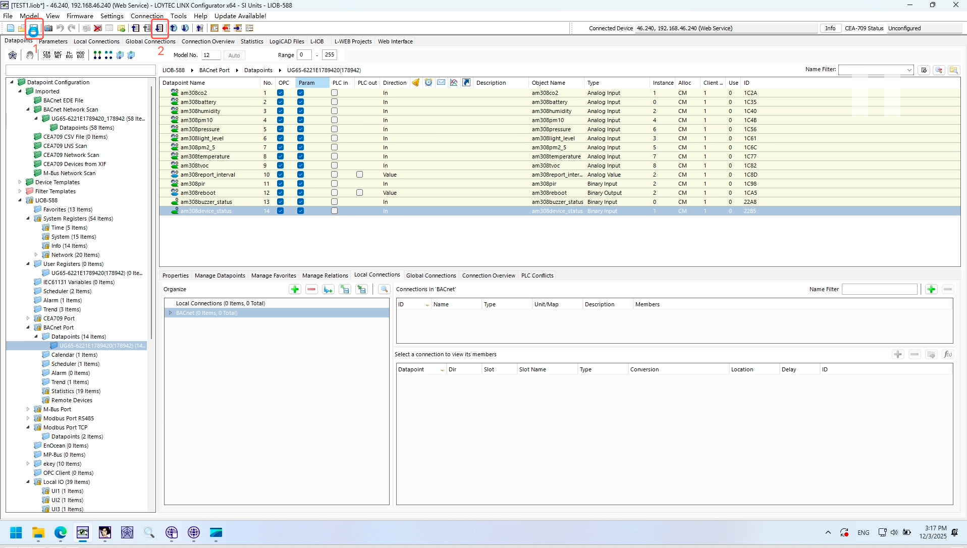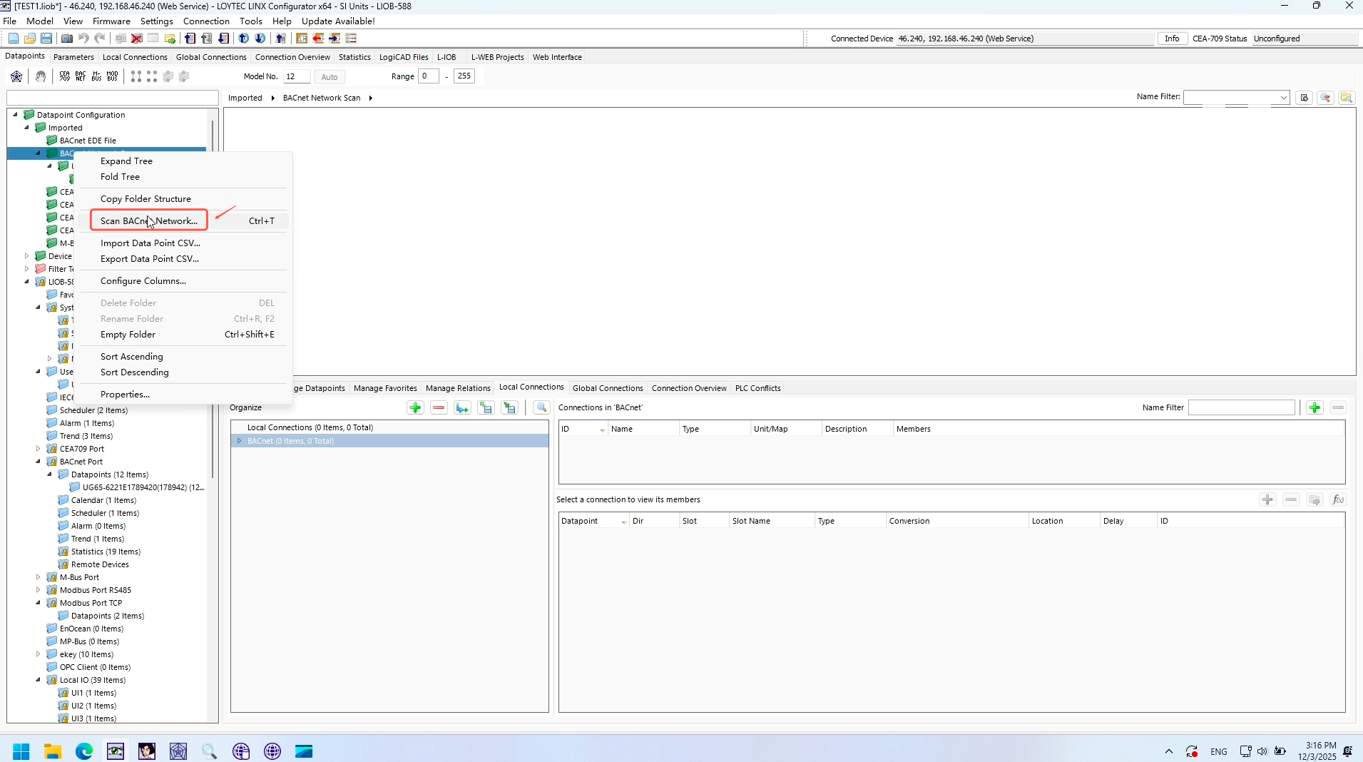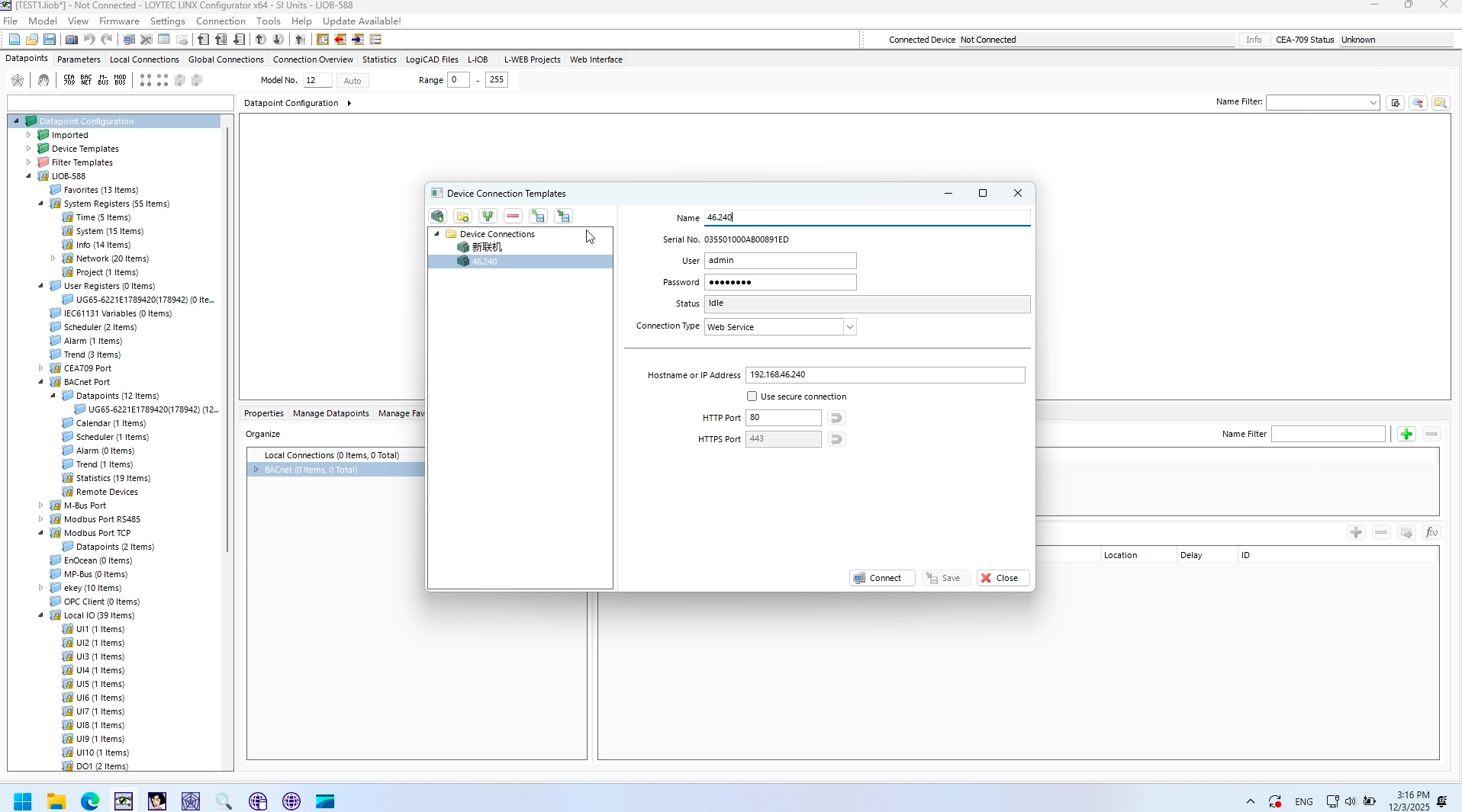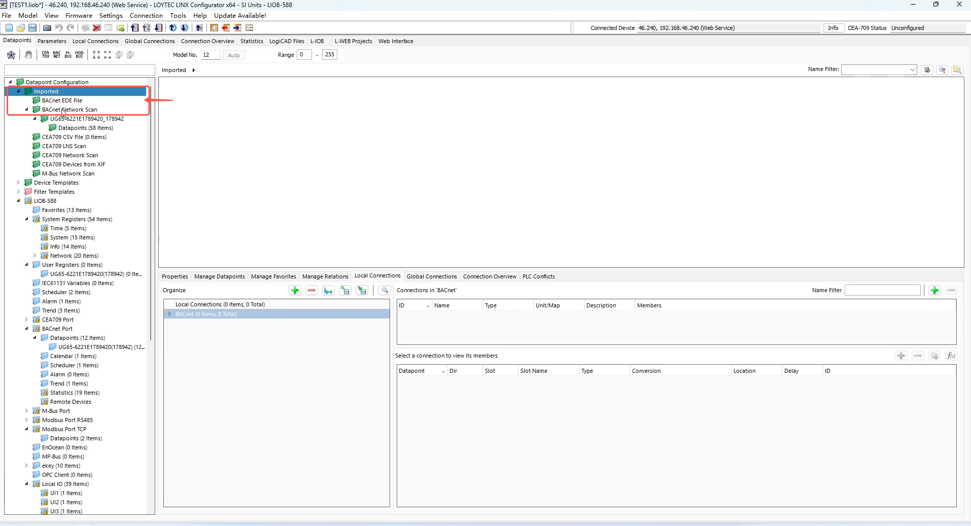 Please check the IP address at IOB588 side first. in this example the IP is 192.168.46.240.