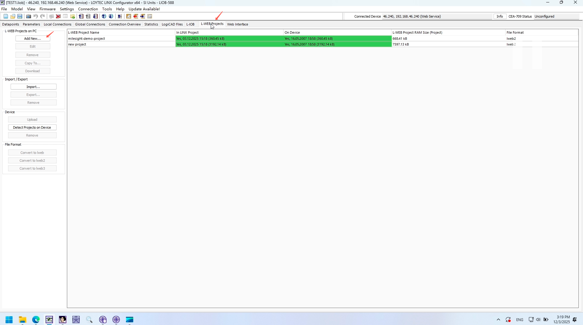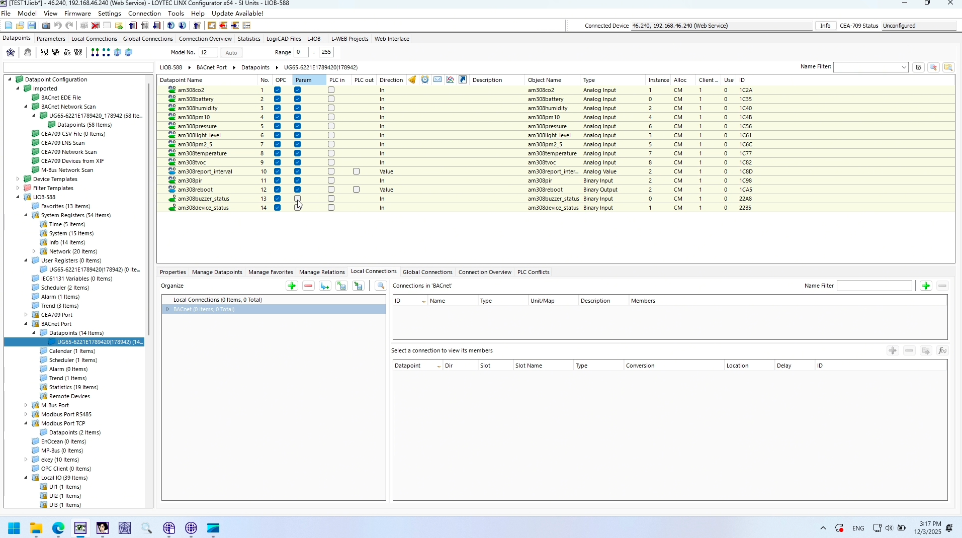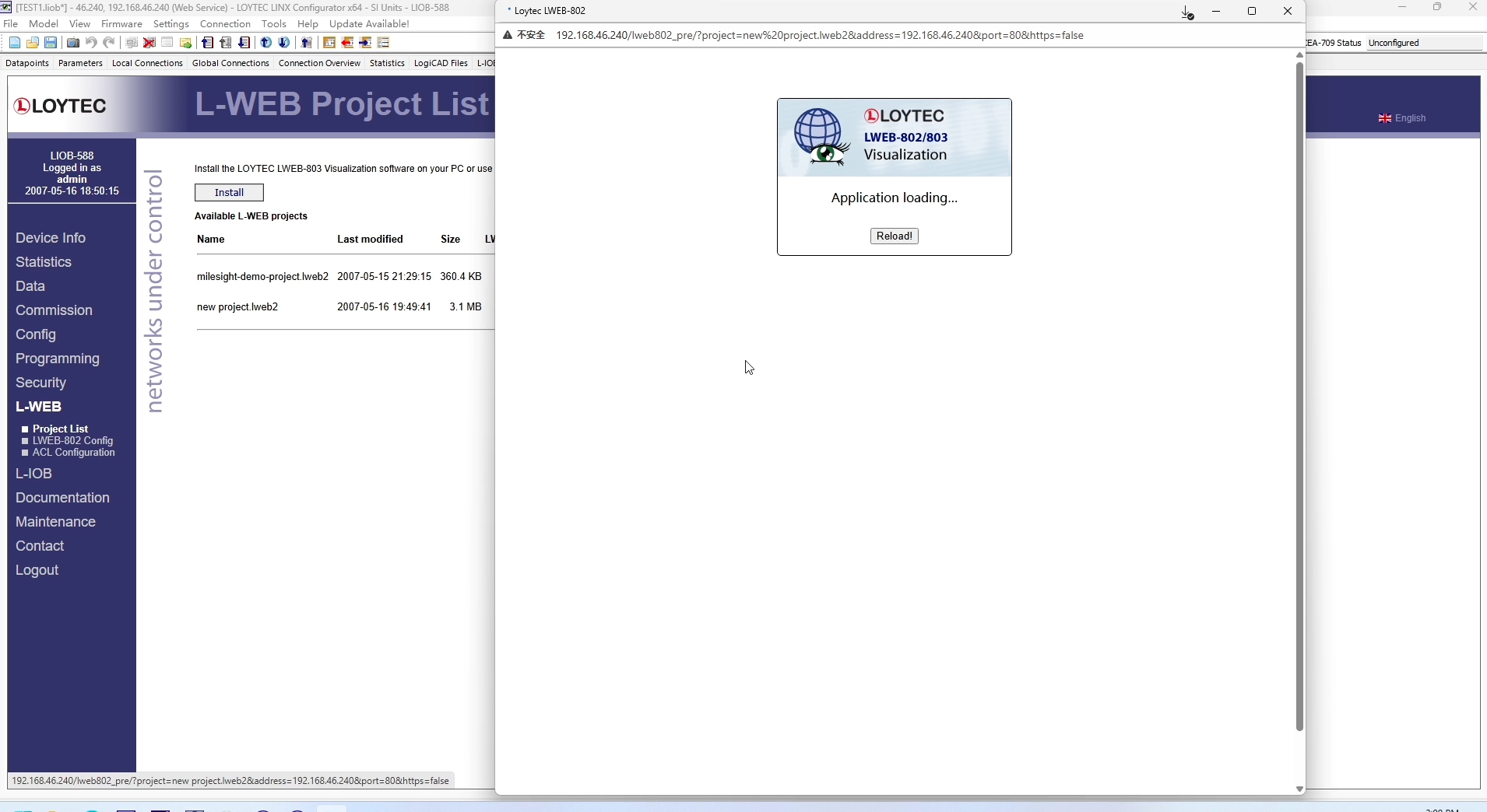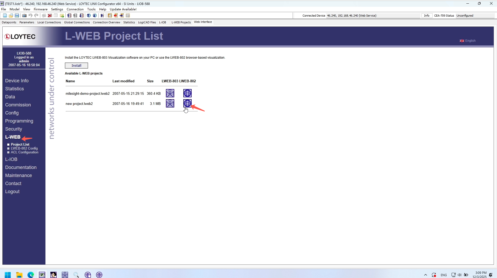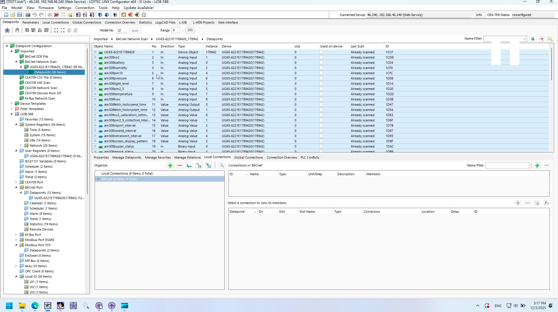 Please check the IP address at IOB588 side first. in this example the IP is 192.168.46.240.