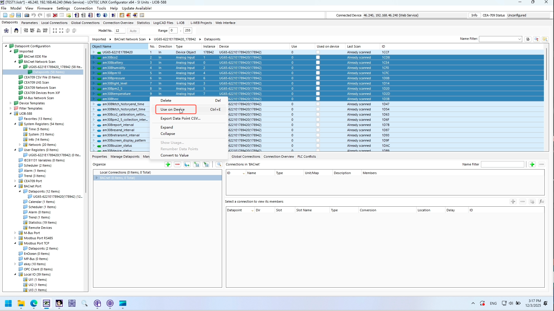 Choose the wanted datapoints, right click and choose 'use on Device'.