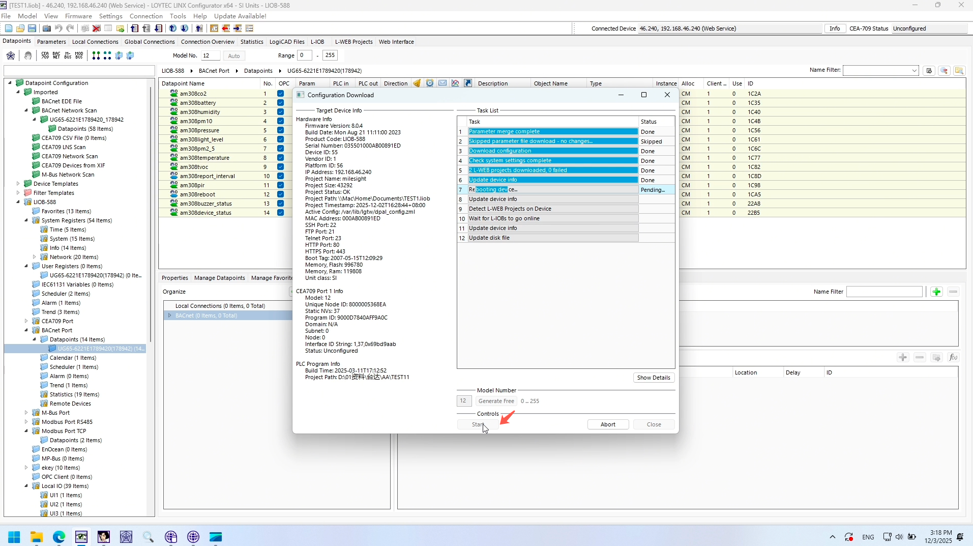 Click 'Start' , the IOB controller will obtain the configuration and restart to take effect automatically.