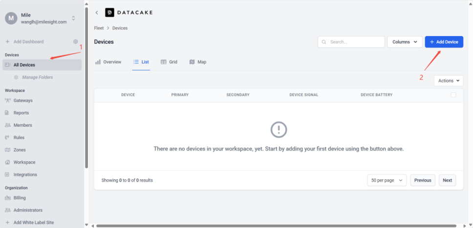 You will first need to register a Datacake account and add the gateway to Datacake. For this part, you can refer to our existing article: Datacake Platform-Milesight Gateway Integration