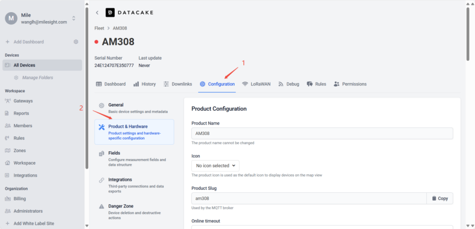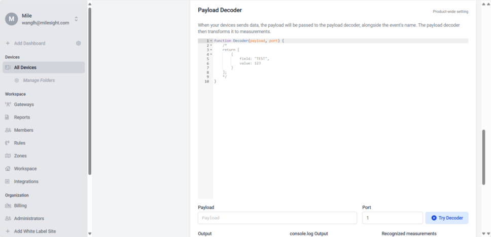 Since some of Milesight’s new products do not yet have templates on Datacake, the devices cannot be directly parsed or displayed as online after being added to Datacake. This article will introduce how to add Milesight devices without templates to Datacake, and how to parse and display their data.