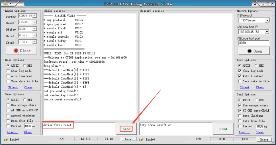 Due to CT Series don’t have physical reset button, we would use TCPCOM connecting CT1XX/CT3XX to reset device.